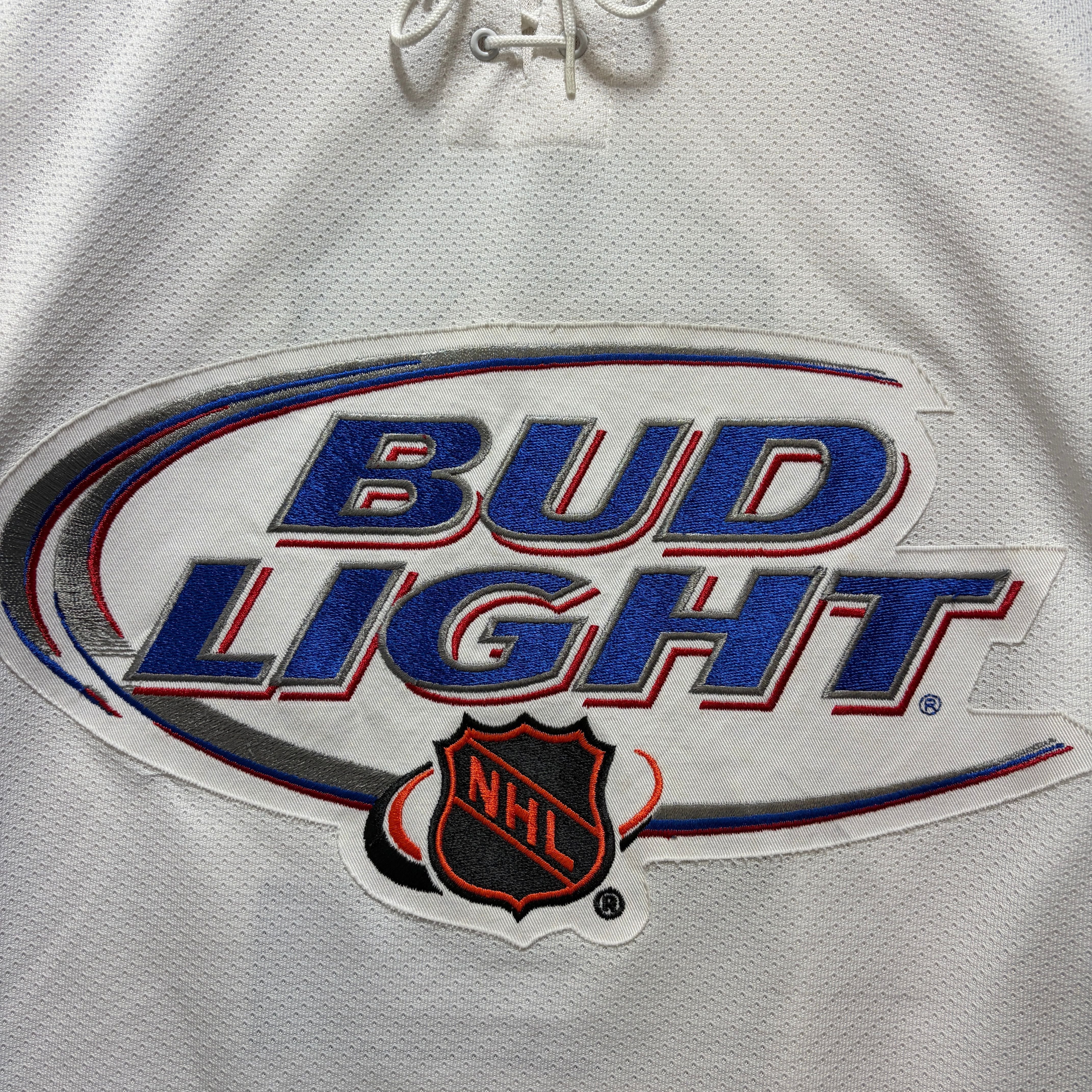 CCM製 NHL(ナショナル・ホッケー・リーグ)の公式ビールパートナーのBud Lightのホッケーシャツです。